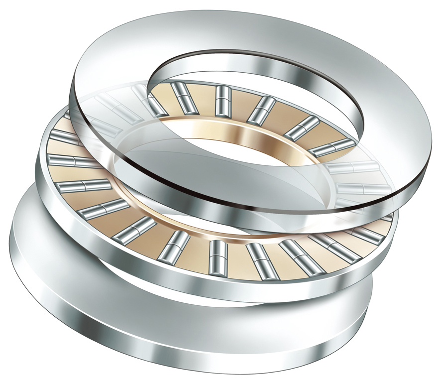 推力保持架組件與軸圈或座圈一起使用或直接將其集成在相鄰結(jié)構(gòu)上。如果不與推力軸承墊圈一起使用,則它們的滾道需要按照滾動軸承的滾道加工。